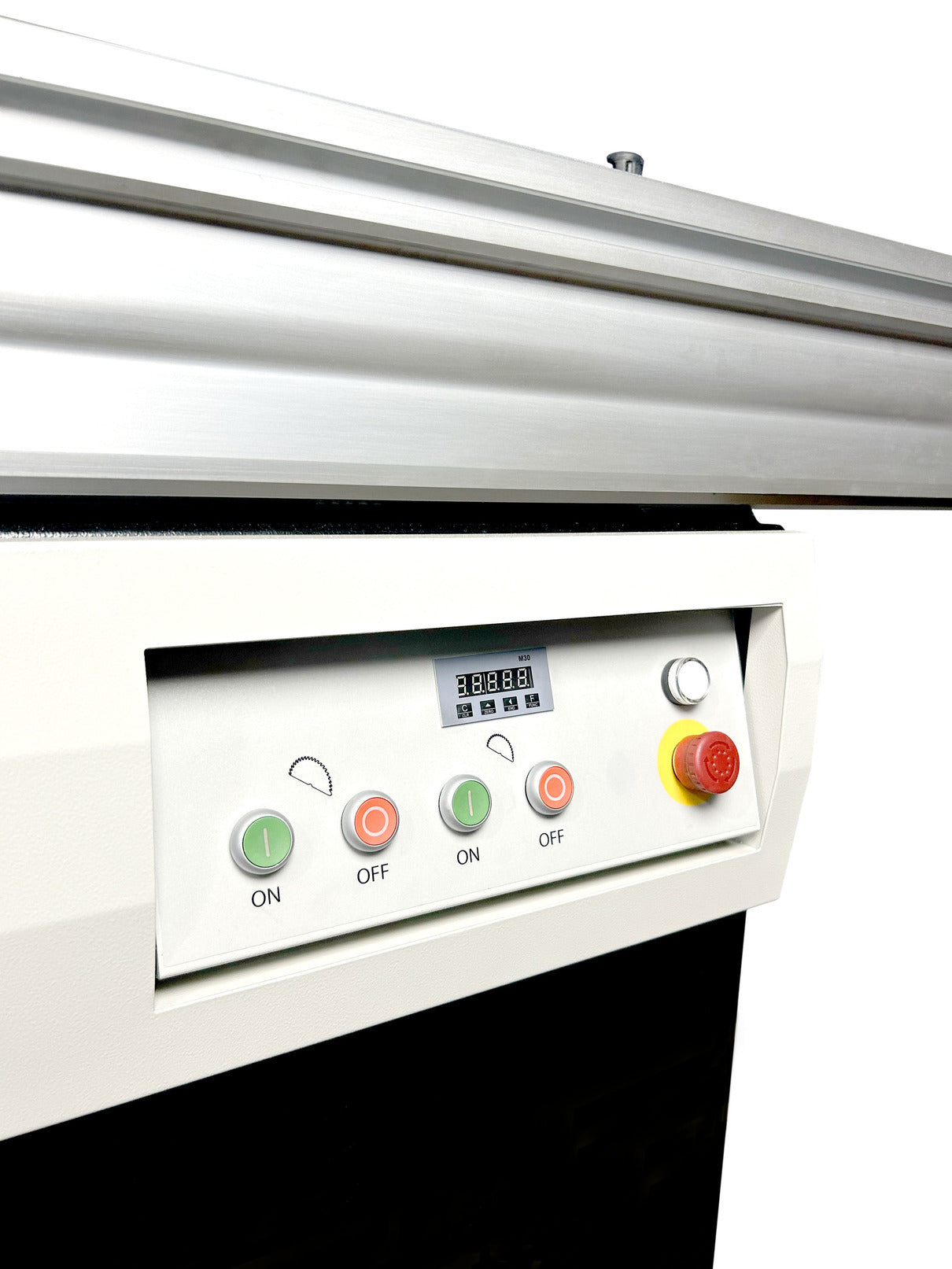 Introducing the New BMS.3200.IR 40-year Edition. The BMS series is one of Maksiwa’s top seller sliders that has been completely redesigned from the ground up with improved construction and materials. The new design is more ergonomic and features a more powerful 1HP scoring motor, adjustable leveling feet, dual blade covers, integrated dust collection exhaust on a swing-away arm, and new soft touch buttons and control panel. All these improvements come at the same unbeatable price as before!