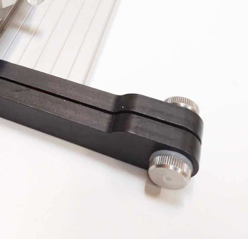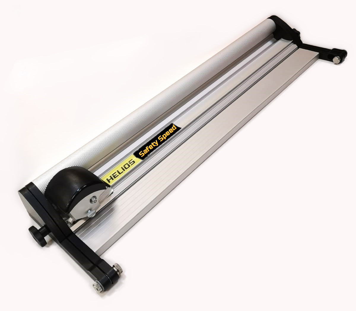 Cut Substrates the easy way with the Helios substrate cutter. This unit features a strong anodized aluminum base that incorporates dual cutting tracks, one for the utility blade and another for the standard cutting wheel. It is fitted with an integral leveling adjustment allowing the cutting bar to sit flat on any thickness of material up to ¾” (20mm) thick. The cutting head includes a magnetic blade magazine which accepts utility blades and acrylic scoring blades. A 45mm textile cutting wheel and holder is also included as standard equipment.