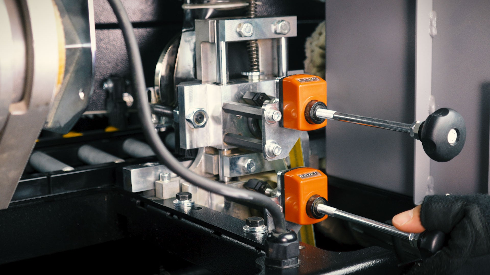 The friction-free worktable feed panels with high-precision and rollers moves the panels through effortlessly and smoothly. All stations are adjusted with a mechanical readout for reference and panel processing is fully automatic with all operating units synchronized.